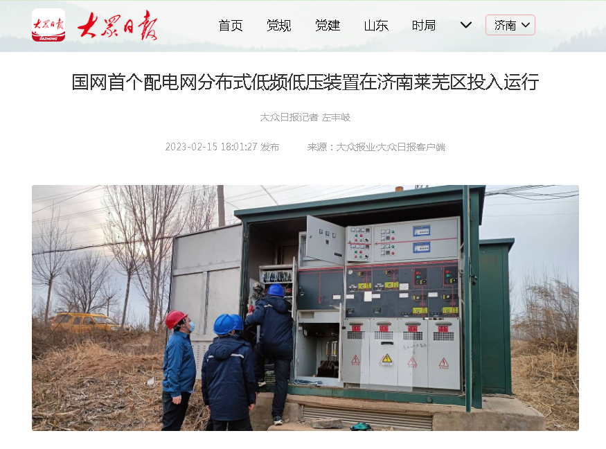 贵州绿优源生态农业科技有限公司参与实施的国网首个配电网分布式低频低压装置在济南莱芜区投入运行